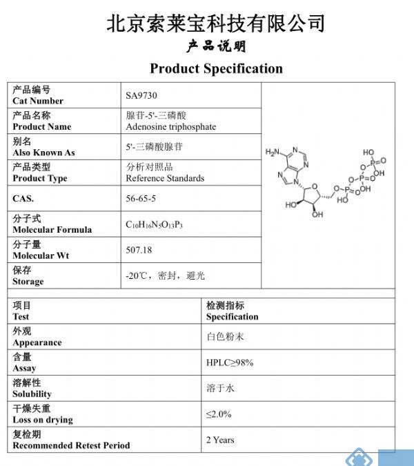 英文名称: Adenosine triphosphate/ATP